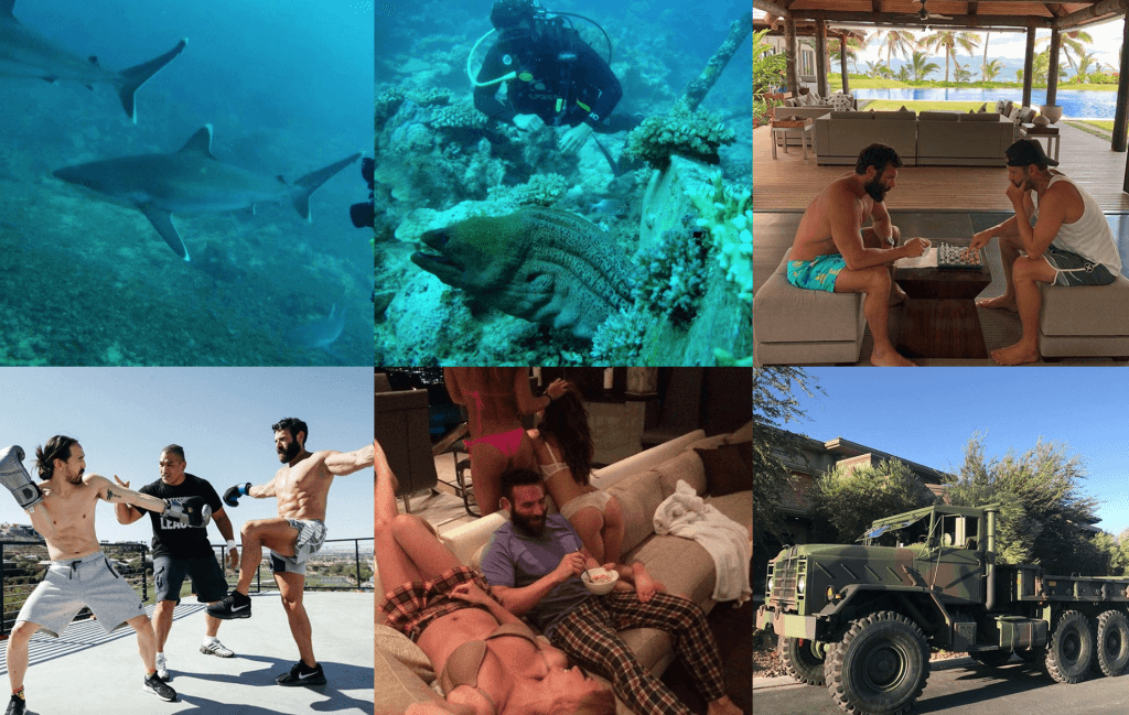Dan Bilzerian er medstifter av kjente Victory Poker, og han har også tjent gode penger fra denne investeringen. Bortsett fra pokerspill, så har han også gjort opptredener i ganske mange filmer, da blant annet Olympus Has Fallen, The Other Woman, Equalizer og Lone Survivor. Han er en populær Instagram-kjendis med mer enn 16 millioner følgere, et tall som øker for hver dag som går. Dan ble svært populær på Instagram takket være sine opplastinger som fremhevet hans spektakulære playboy livsstil. Med sin livsstil har Dan faktisk opplevd tre forskjellige hjerteinfarkt, allerede før han ble trettito år gammel.